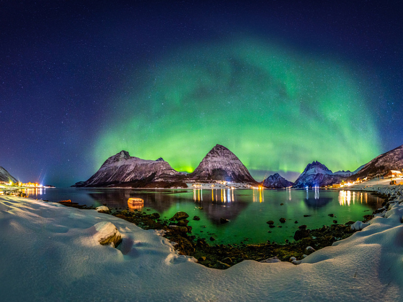 Одним из знаменитых мест в этом северном регионе является станция Aurora Sky в Абиско, Швеция. Расположенная на вершине горы Нуолья, эта современная обсерватория предлагает посетителям уникальную возможность увидеть этот танец огней, наслаждаясь панорамными видами. Благодаря чистому небу, Абиско является одним из лучших мест в мире для наблюдения за северным сиянием. Этот город расположен примерно в 200 км за Полярным кругом и часто находится в пределах авроральной зоны, что значительно повышает шансы увидеть северное сияние.
