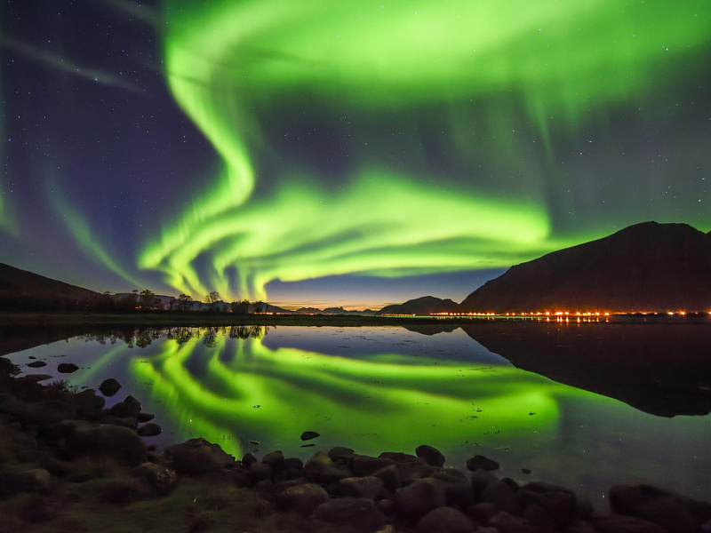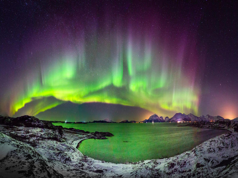 Наиболее распространённые цвета, которые можно увидеть, – зелёный и розовый, но Северное сияние также может проявляться в оттенках фиолетового, синего и даже красного – это настоящее природное световое шоу!